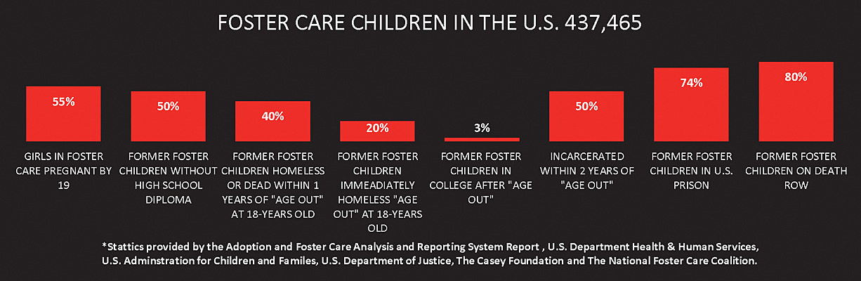 This has been thoroughly documented in numerous independent reports over several decades. Nearly one third of the children in foster care reported being abused by a foster parent or another adult in a foster home. That study didn’t even include cases of foster children abusing each other. What's even worse, statistics suggest bleak futures for children who grow up in foster care, therefore as a society, we are failing our countries children. (See graph below)